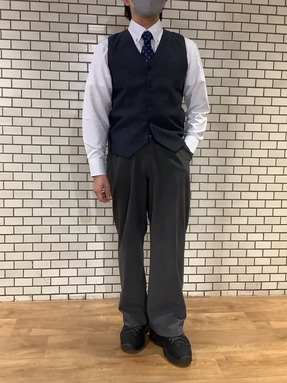 ポリエステル100%の生地ですが、肌触りが柔らかく綿のような柔らかさで着心地が良く、着心地だけでなく機能性も満載です。 シャツ、ベストはシンプルにまとめネクタイに小紋柄を入れることでシンプルすぎないコーデにしました。 着心地、機能性抜群のコフレックスシャツおすすめです。
