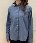 着回しやすいインディゴブルーのシャツ。 オレンジ色のニットベストとネクタイを差し色に✨