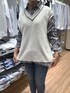 グレーのストライプシャツに 白のニットベストを合わせました♪ シャツは肌触り柔らかなガーゼ素材で お尻まで隠れる安心の着丈✨