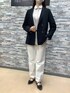 白衿で柔らかな印象のラウンドカラー。 衿と袖部分には織り柄が入っていて 上品な雰囲気です✨ 白パンツを合わせて 黒ジャケットで引き締めてみました♪ ご覧頂きありがとうございます❣️❣️