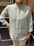 Wガーゼのスタンドのブルーのストライプは、爽やかです。着心地はとても柔らかくてゆったり目です。