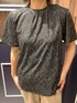 プリントのスタンドカラーで着心地が柔らかい。ゆったり目で1枚でもさまになります。