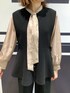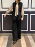 ドット柄のブラウスに女性らしいペプラムデザインの 組み合わせで落ち着いたスタイリングにしました。 リボン結びではなくボウタイでシンプルに! ペプラムはハリのある生地感でシルエットがきれいでおすすめです◎