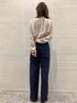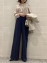 「とろみ×つや感」着るだけでオシャレ度がUPする シルキーサテンシリーズ♡ フロントのピンタックが上品なブラウスに、 紺のワイドパンツを合わせることで少しクールな雰囲気に◎ ジャケットを脱いでトップスインでもアウトでも綺麗に決まる一枚です☆