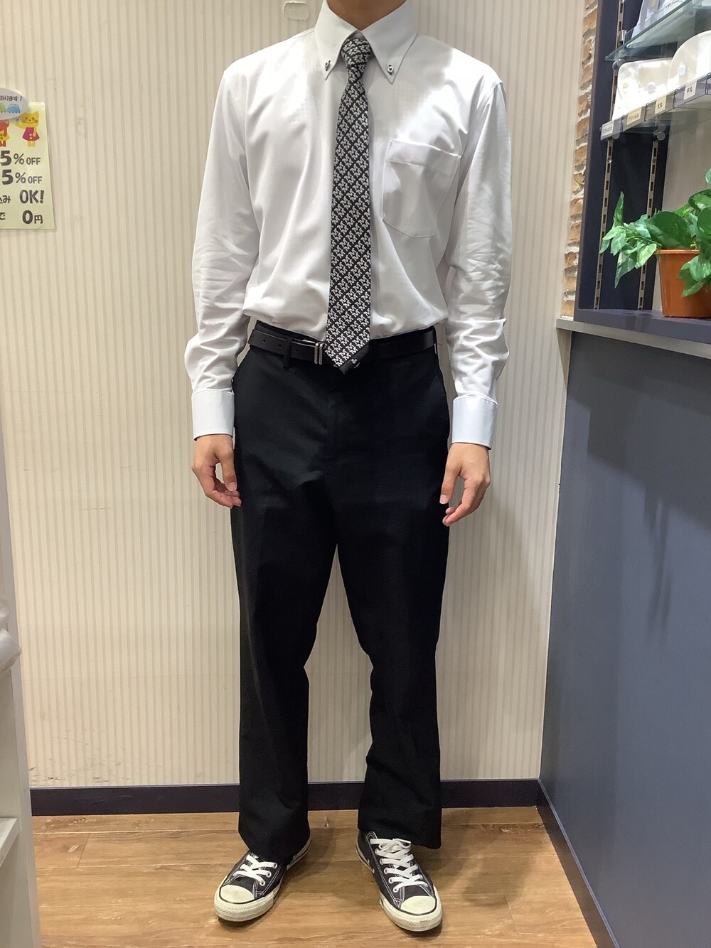 白のシャツに特徴的な柄! 白のシャツなのでどんなネクタイでも合わせやすいです♪