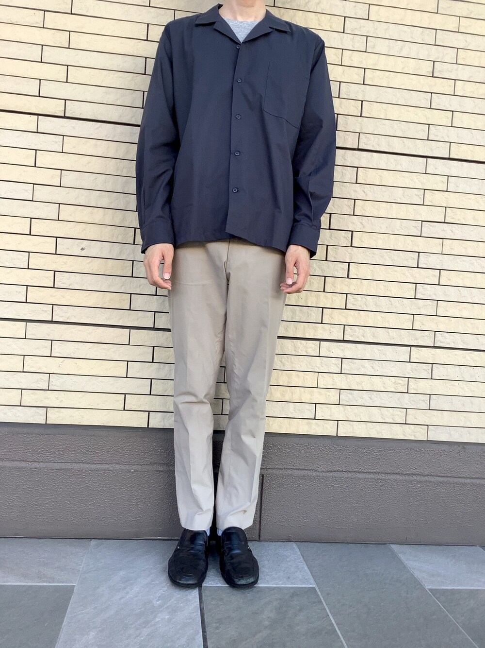ネイビーグレーのオープンカラーシャツ。 シンプルにTシャツの上に羽織るだけでカッコよく着ていただけます! サラッとした生地なので着心地も良く、お手入れ簡単なイージーケア加工なのもポイントです。