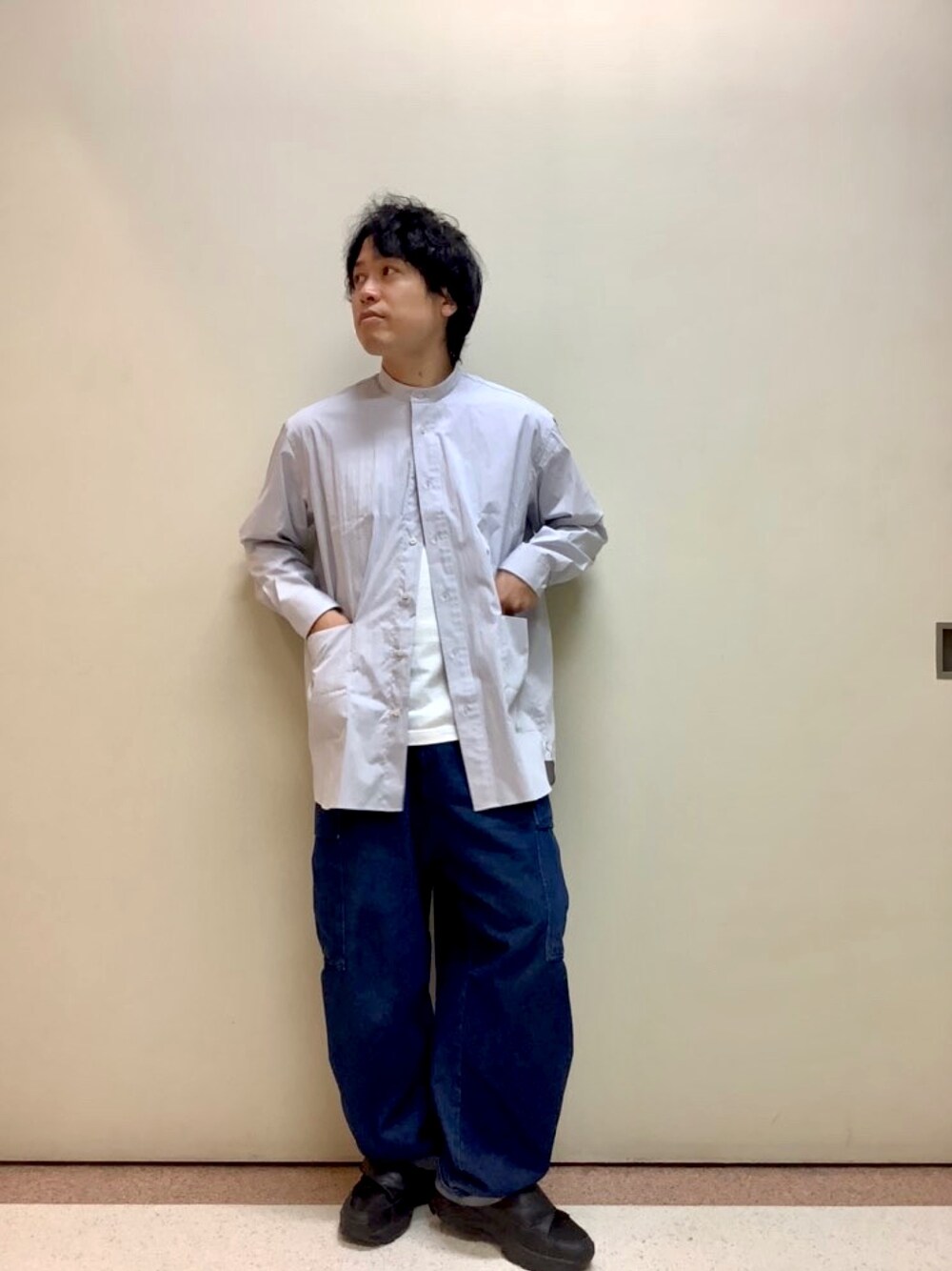BRICK&SONS 柏高島屋ステーションモール店のシャツ/ブラウス「SHELTECH リラックスバンドカラーシャツ<ライトグレー>」を使ったコーディネート