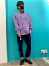 リラックスシルエットでストライプが目立つようにボトムス、シューズを落ち着いたカラーでまとめました。 お出かけ前にシュッとフレグランス✨
