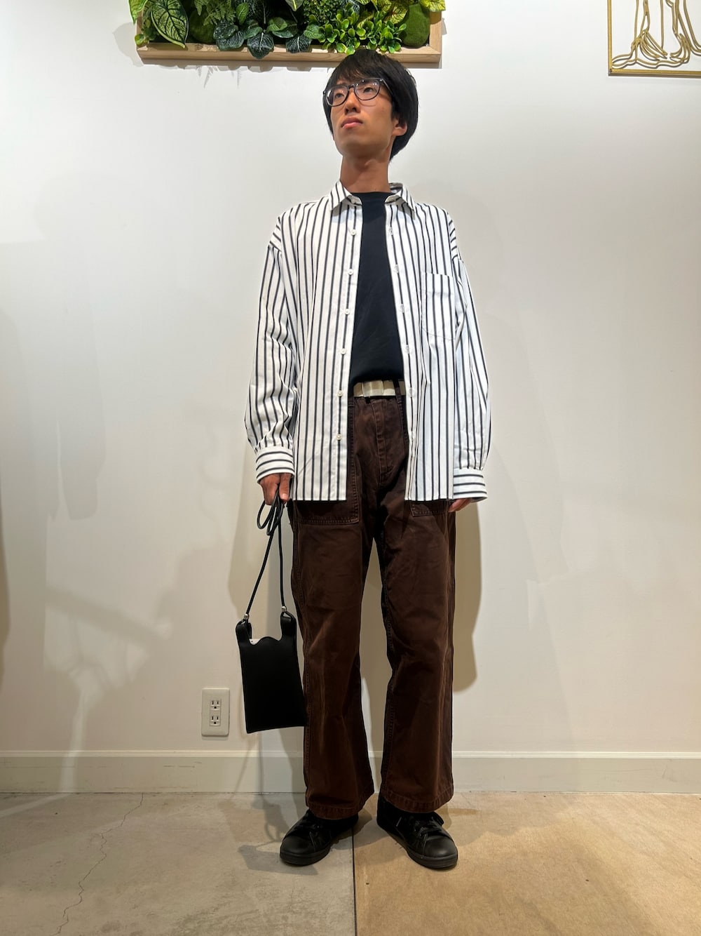 黒ストライプとブラウンのパンツでクラシック感を出してみました!