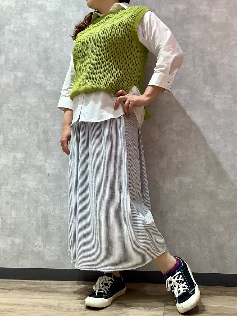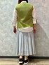 身長163cm 初夏を感じさせるイエローグリーンのベストはシンプルなホワイトシャツ組み合わせて爽やかに🍋