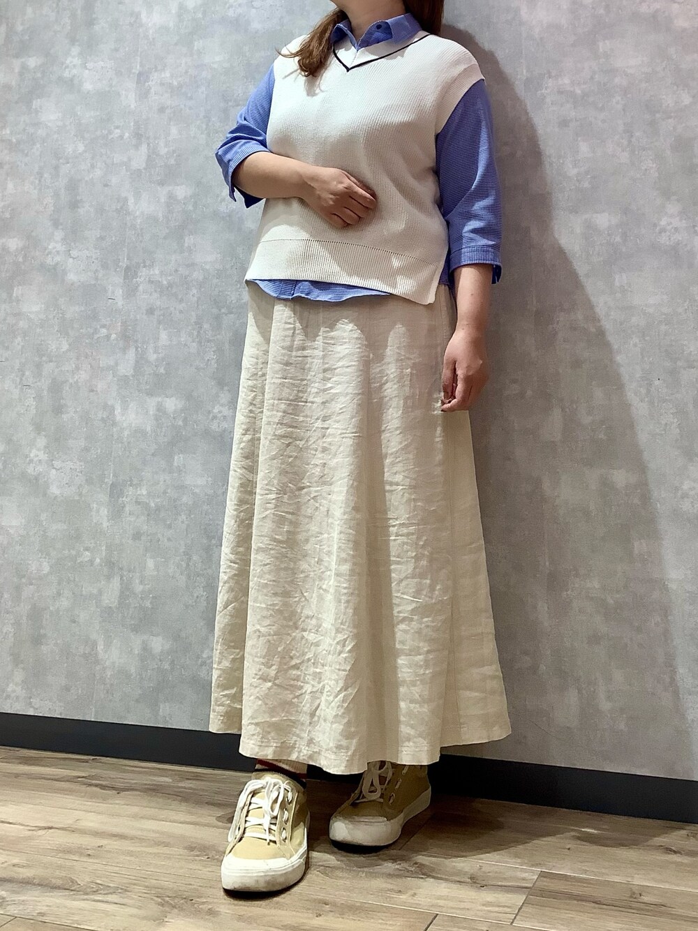 身長163cm 上下ホワイトコーデの差し色に爽やかブルーを取り込んだ一足早いサマーコーデ☀️🌊