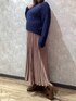 定番のブルーにラメが上品な光沢を放ち ピンクブラウンのスカートが 柔らかな雰囲気を演出 足元を濃いブラウンでまとめた シンプルながら華やかさのあるコーディネート
