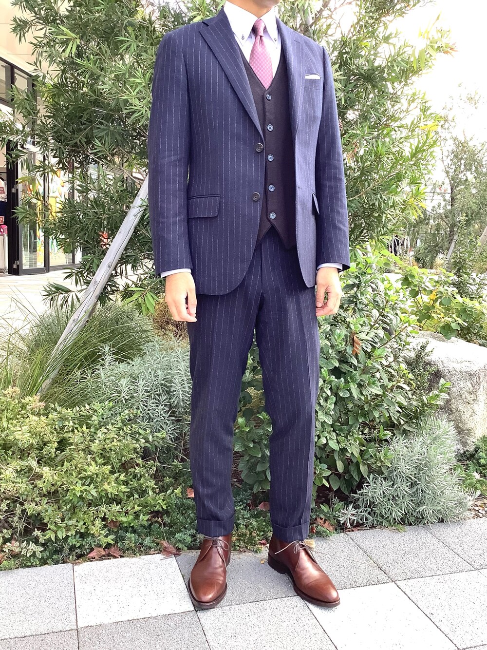グレーのボタンダウンシャツ×ネイビーのジレでビジネスコーデにしてみました👔 淡めなグレーなのでネイビーのスーツとも相性抜群です♪ ネクタイを赤系で差し色にすることで華やかな印象に♪