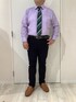 個性的な印象を持たせてくれる紫色のシャツにジャケットを合わせてみました👔 今回は緑のネクタイを合わせてみましたが、茶色や青など様々な色のネクタイでもきまるシャツになっています♪ 寒色系の色味なので冬のシーズンにピッタリな一枚です👍