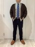 暖かいニットカーディガンに爽やかな緑のシャツを合わせてみました🍁 細かめのストライプのシャツで軽い印象を持たせることができ、冬でも重くなりすぎないコーディネートに仕上げることができます✨ 青いネクタイだけでなく、茶色などの落ち着いた色味を着用しても大人な印象でカッコよく決まること間違いナシ❗️