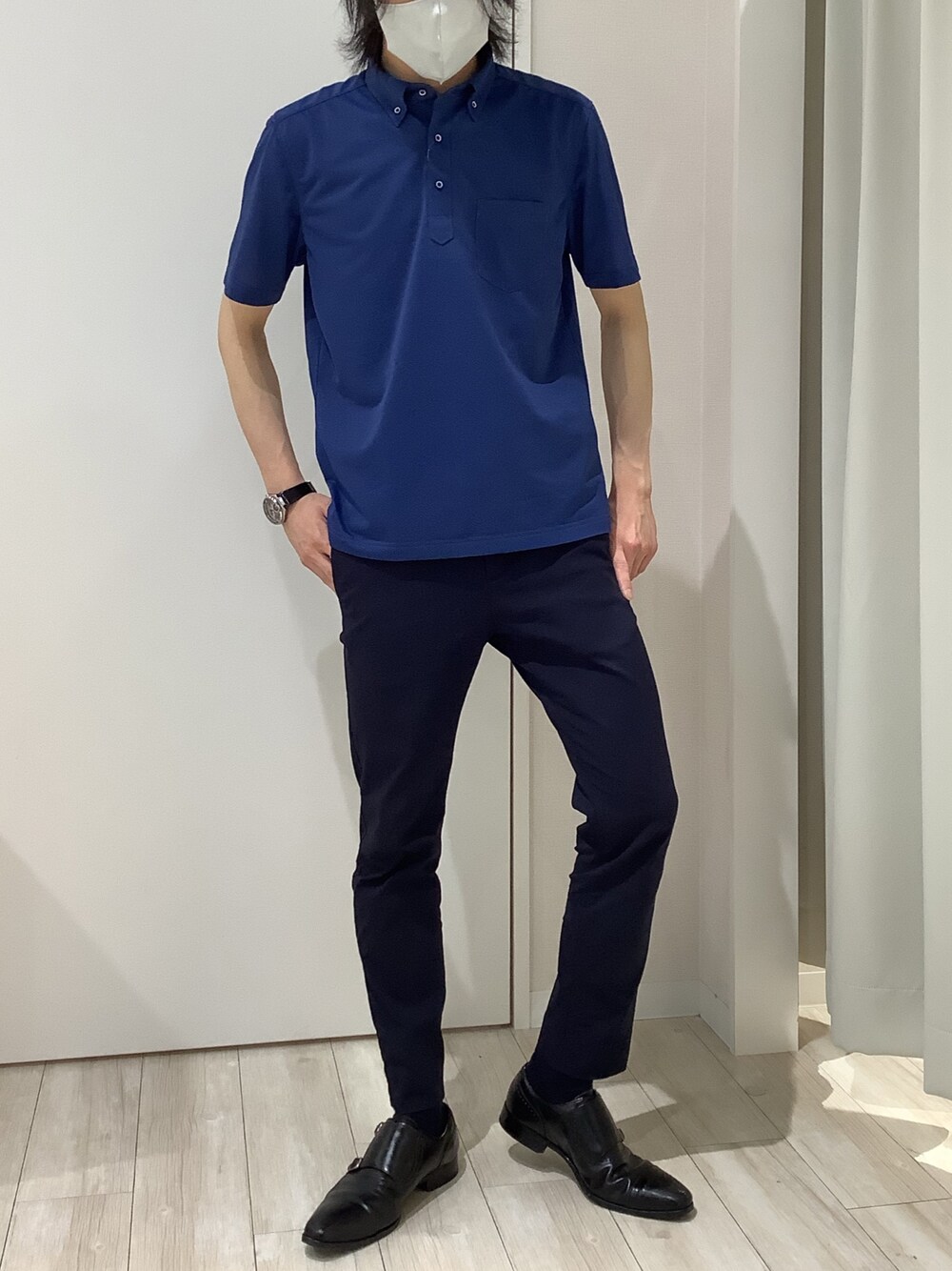 とにかく着心地の良いポロシャツ!✨🟦 着用した時に軽っ!と感じました!サラッとしており、風通しがいいのでこの先の暑い日も快適に!プライベートでも使用できそうです!単体では青さの主張が強めですが、紺のパンツと相性良く、馴染んで良かったです!◎