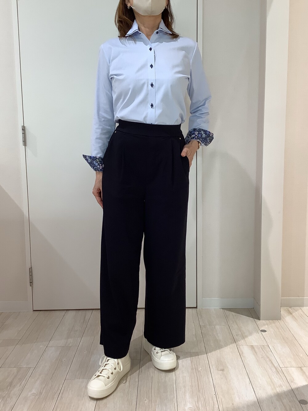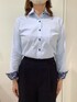 衿元のマイター仕様やストレッチがアクセント! 衿、袖口裏側は花柄の別生地仕様になってます🌸