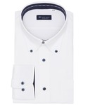 ストレッチの効いた着心地が良いボタンダウンシャツ!✨綺麗な白色の生地に、青色ボタンとシンプルながら使いやすい万能シャツです。ネクタイも自由度が高く様々なネクタイと相性◎!1枚は持っておきたいシャツですね!
