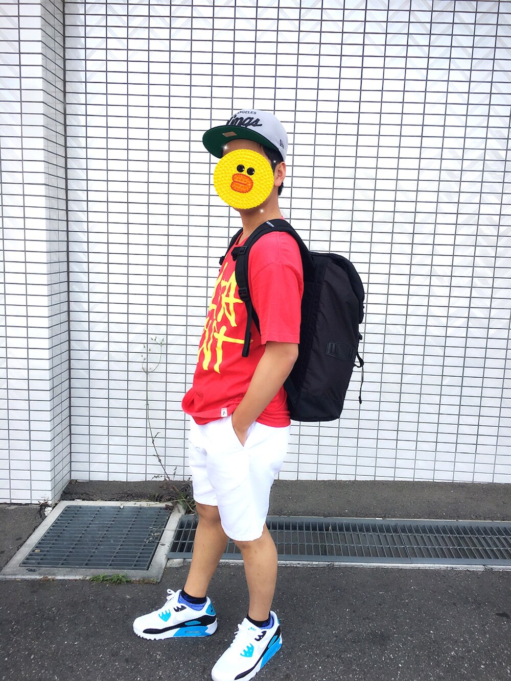 先月購入のAIRMAX90と白パンツを着用
