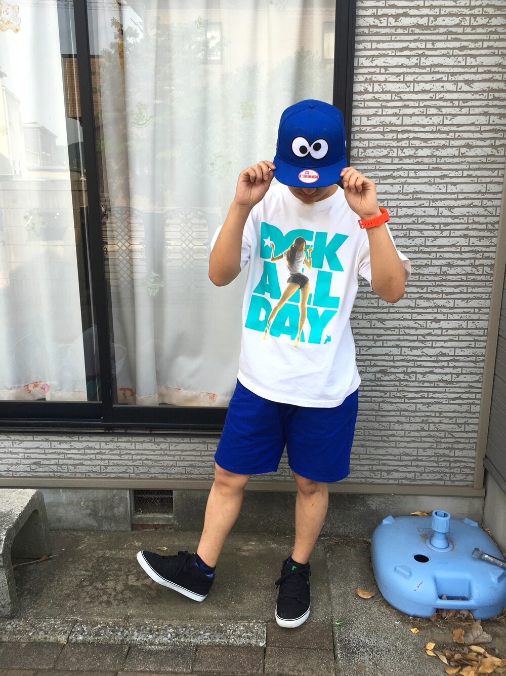 お気に入りのキャップを着用