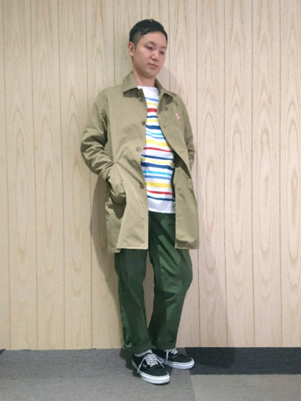 新色のパステルカラーマルチボーダーフレンチセーラーTシャツ。 アースカラーのワークスタイル春らしくしてくれます。