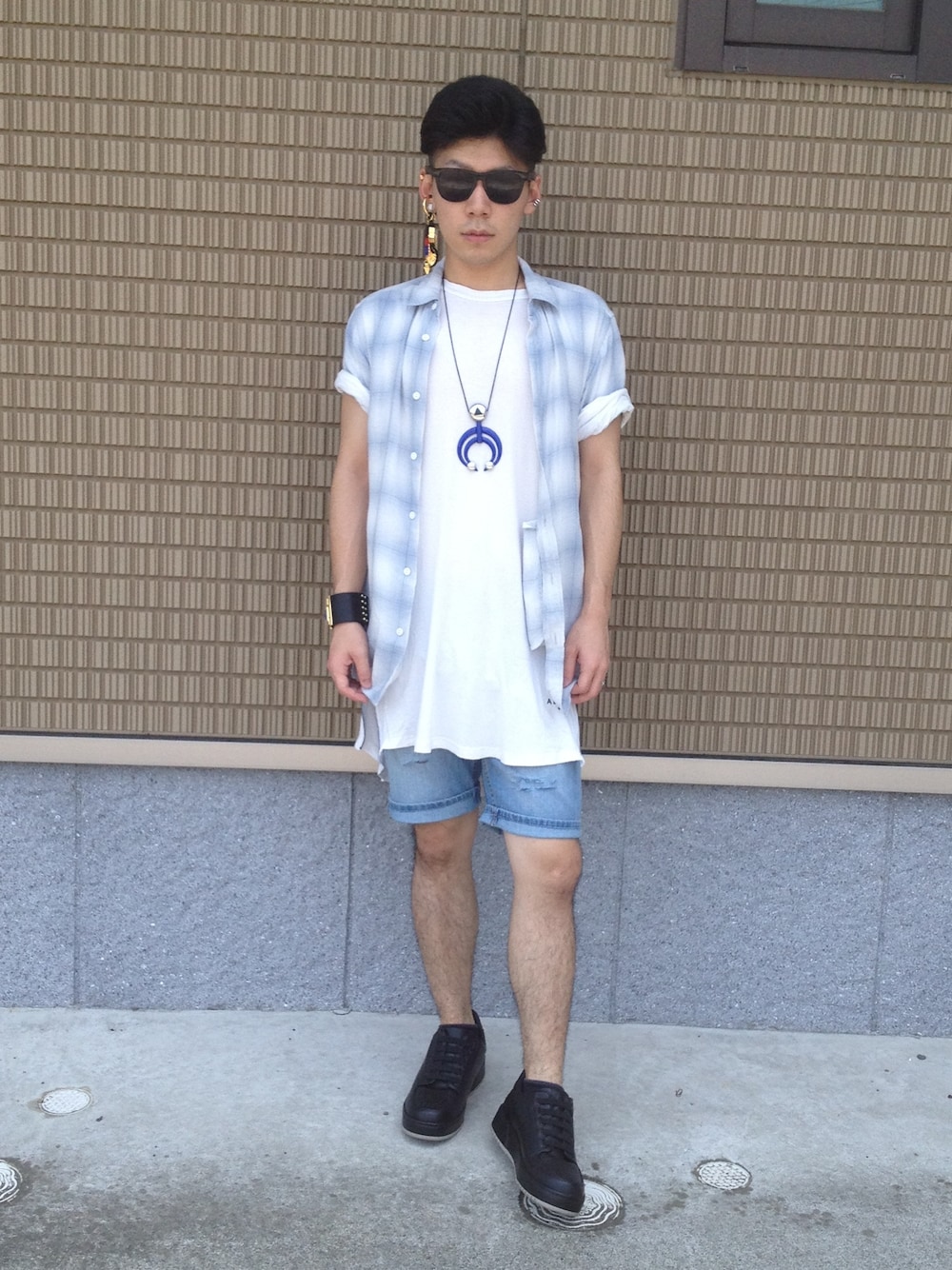 3.1 phillip limのスニーカーとMONKEY TIMEのシャツ、cheap mondayのデニムショーツを初下ろし\(^o^)/ ショーツは自分でダメージ加工を施しました!!!