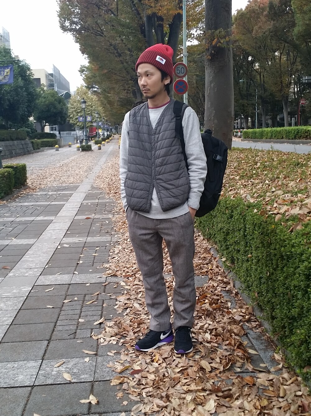 免許の更新行ってきました🙋 1違反でゴールド終了😱 今日はグレーのワントーンコーデ👕👖 差し色に使った赤のニットキャップで、パンツに細く入ってるストライプの赤を拾いました😃 見えない所でユニクロの靴下も赤です😅 去年買ったトンプキンのスウェットは柔らかくて着心地抜群🎵 今年も色違いで狙い中😋