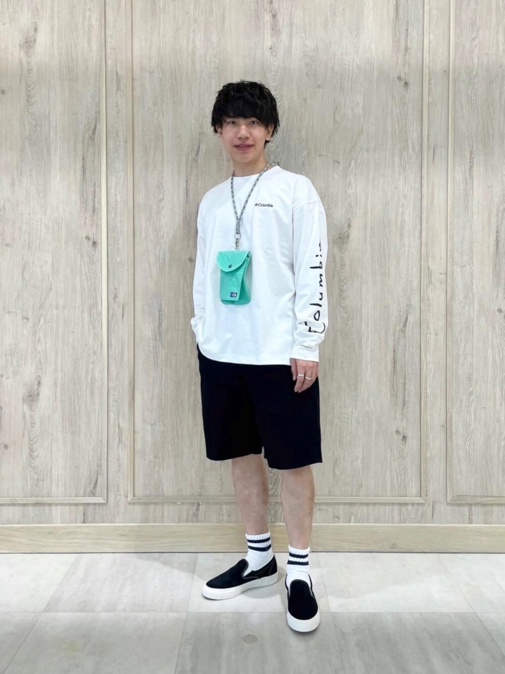 【身長】 167㎝ 【普段サイズ】 トップス:S(44)/ボトムス:S(76)/シューズ:26cm 【サイズ感】 カットソー:ゆったり ボトムス:ややゆったり シューズ:標準的 【コーディネートポイント】 ゆったりしたカットソーの背面プリントを活かしたスタイリングです。 ショーツと合わせ、シンプルに一枚着としてラフに仕上げました。