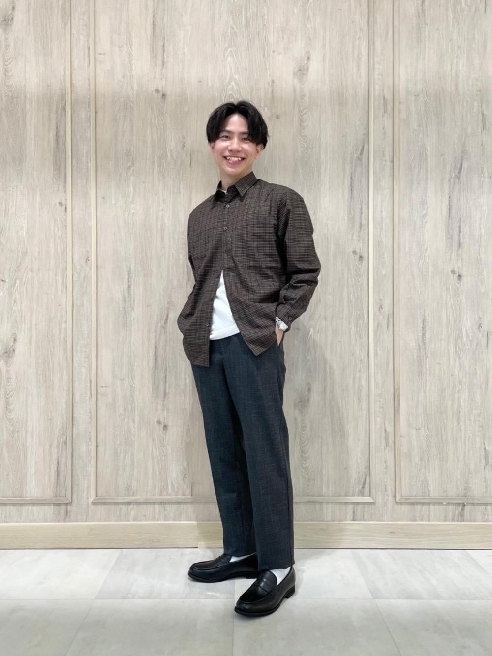 ●身長:167cm ●体重:60kg 【普段サイズ】 トップス:S(44)/ボトムス:S(76)/シューズ:26cm 【サイズ感】 シャツ:ややゆったり カットソー:ややゆったり ボトムス:ややゆったり シューズ:標準的 【素材感・着心地】 シャツ:毛×ポリエステルのビエラ素材ですが、洗濯機洗い可能です。 カットソー:GIZAコットンを使用した天竺生地で肌触りはソフトな加工をしています。 ボトムス:シワになりにくく、穿き心地の良い生地です。 【コーディネートポイント】 チェックシャツを引き立たせる為、その他のアイテムをシンプルにまとめました。