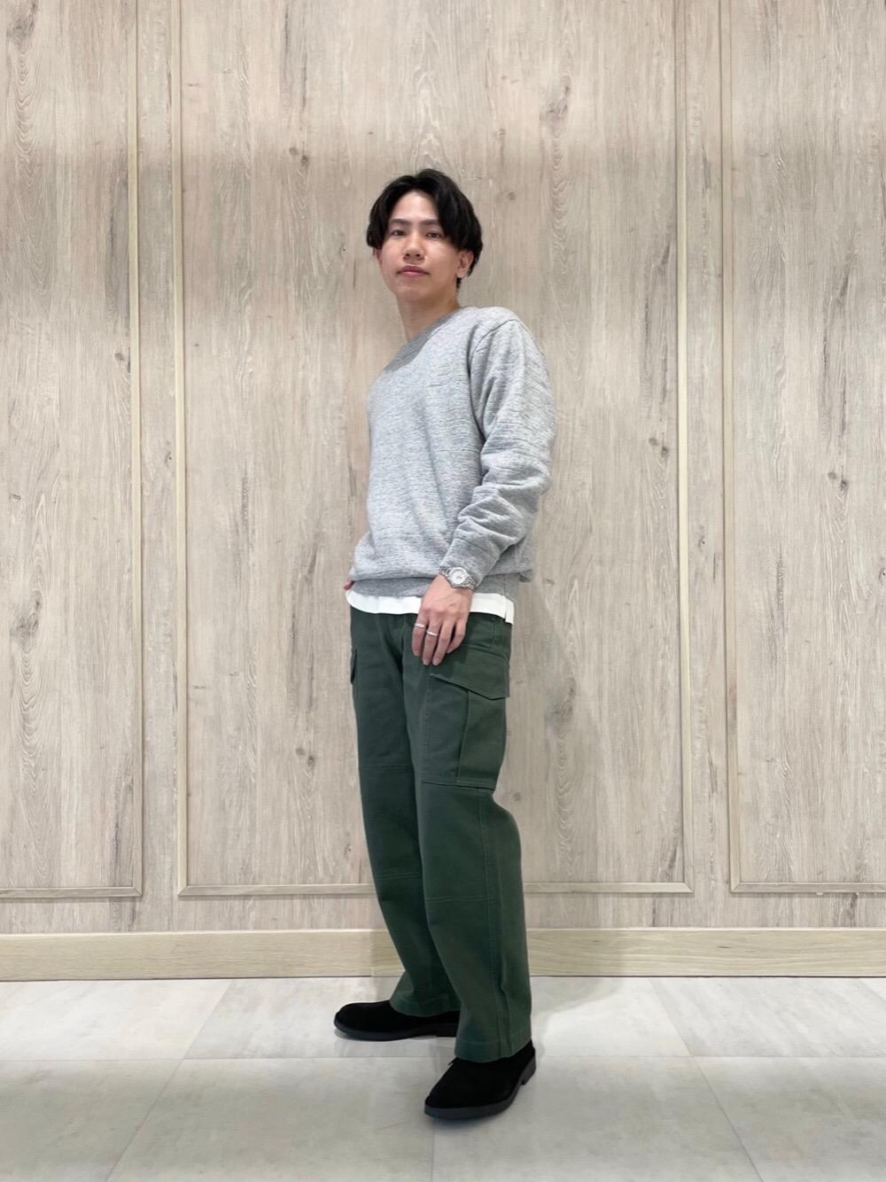 ●身長:167cm ●体重:60kg 【普段サイズ】 トップス:S(44)/ボトムス:S(76)/シューズ:26cm 【サイズ感】 ニット:ややゆったり インナー:標準的 ボトムス:ゆったり シューズ:標準的 【素材感・着心地】 ニット:タオルを着ているような着心地です。 ボトムス:ハリ感のあるコットンサージ生地です。 【コーディネートポイント】 奥行きのある表情のニットにカーゴパンツを合わせ、ほんのり古着っぽさのあるスタイリングに仕上げました。足元は大人なカジュアルルックにマッチするチャッカブーツがおすすめです。