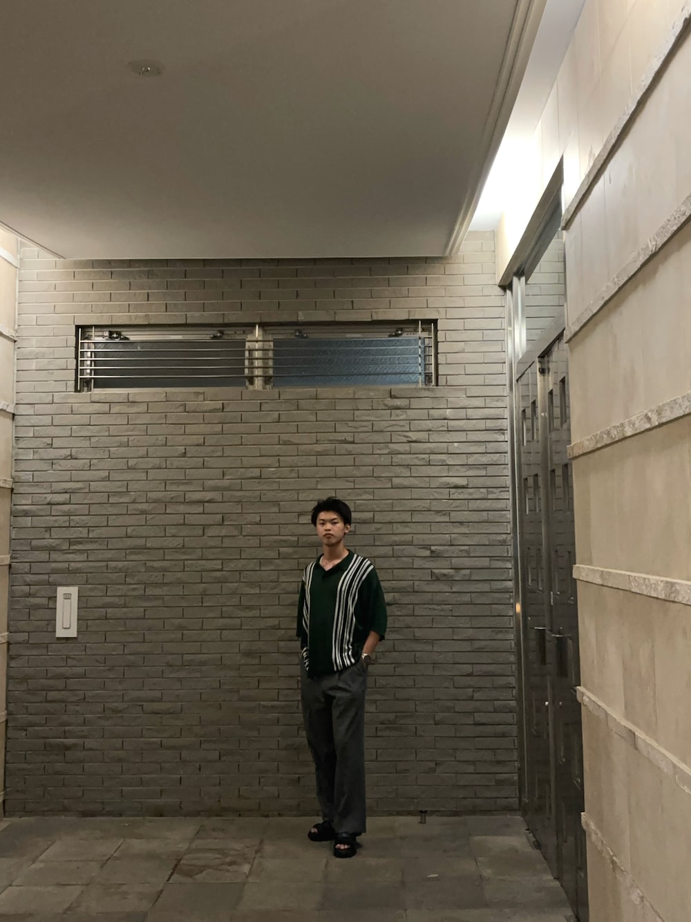 30℃くらいだったのでニットポロでも過ごしやすい一日でした。足元とトップスがカジュアルな分スラックスで調和しました