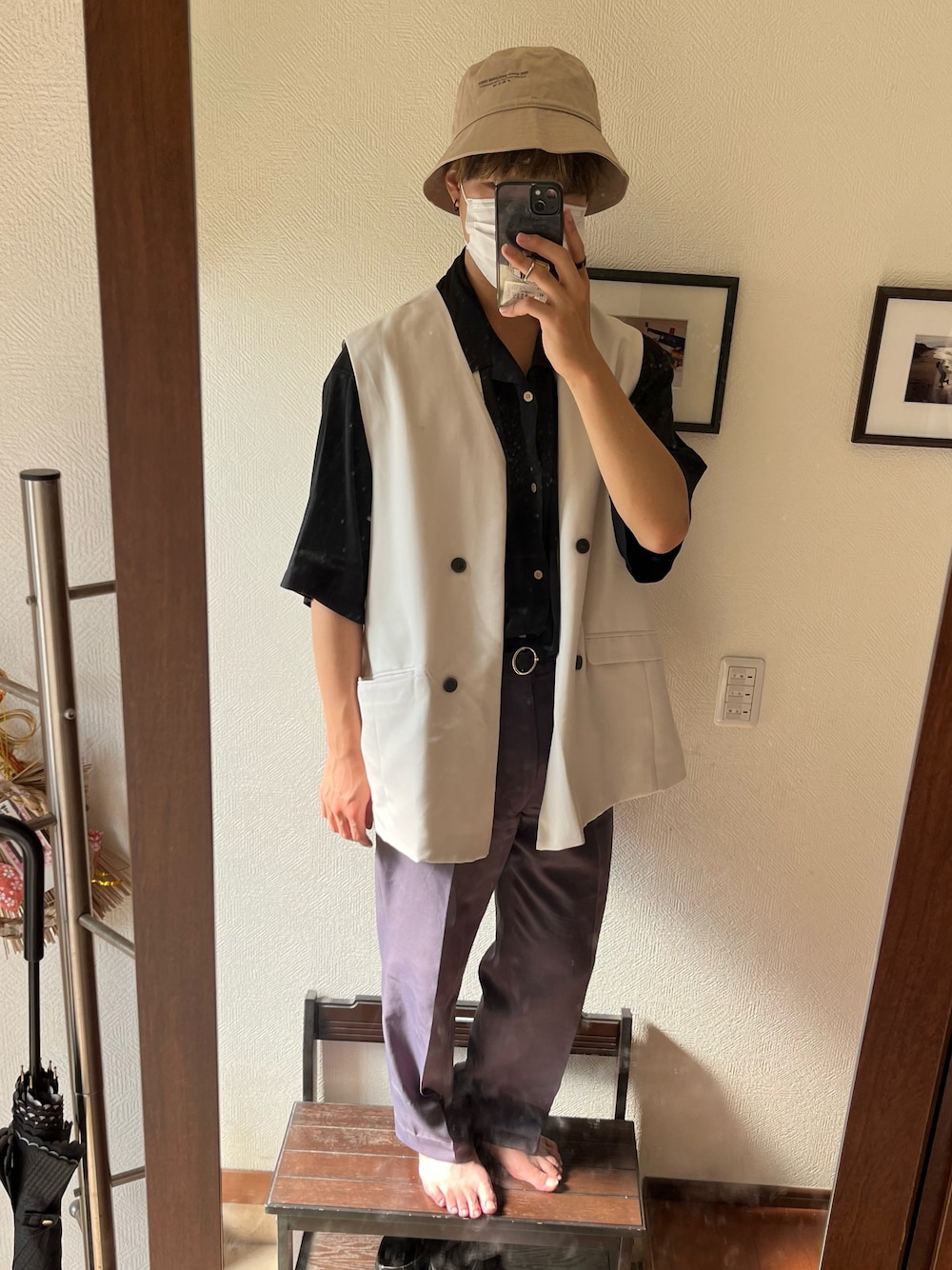 紫ズボンの裾下げしました、久しぶりに裁縫した。そして綺麗めです。はやく5cm厚底スニーカー買って180センチになるわ
