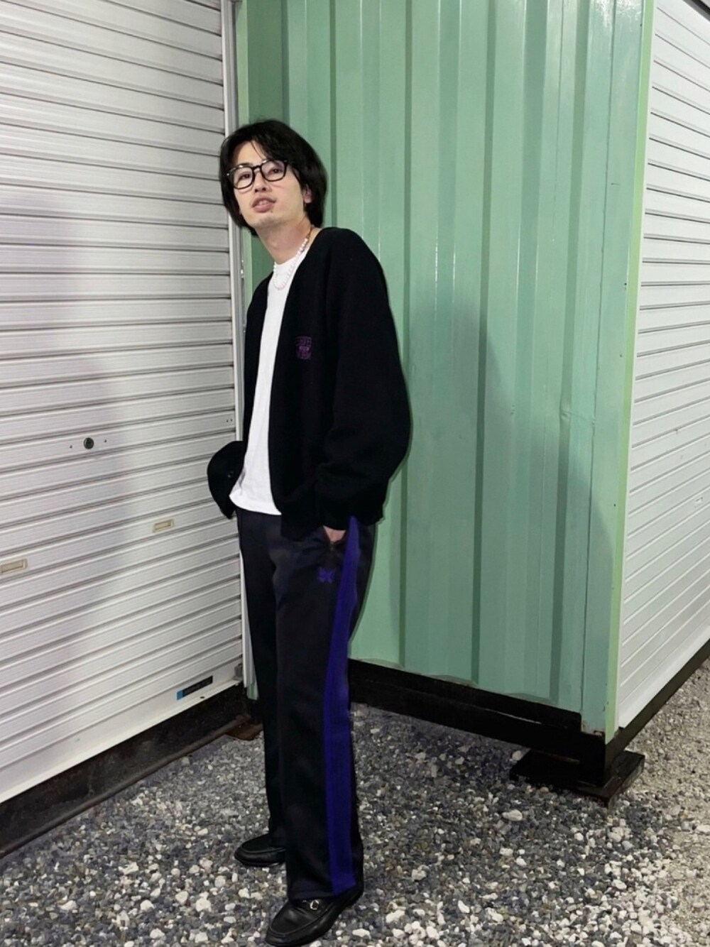 needlesのトラックパンツは、20年のものでフレアになってます! ジャージっぽく見えがちなので、フレアなものを選んでラフながらも、ラフ過ぎに見えないようにしてます!