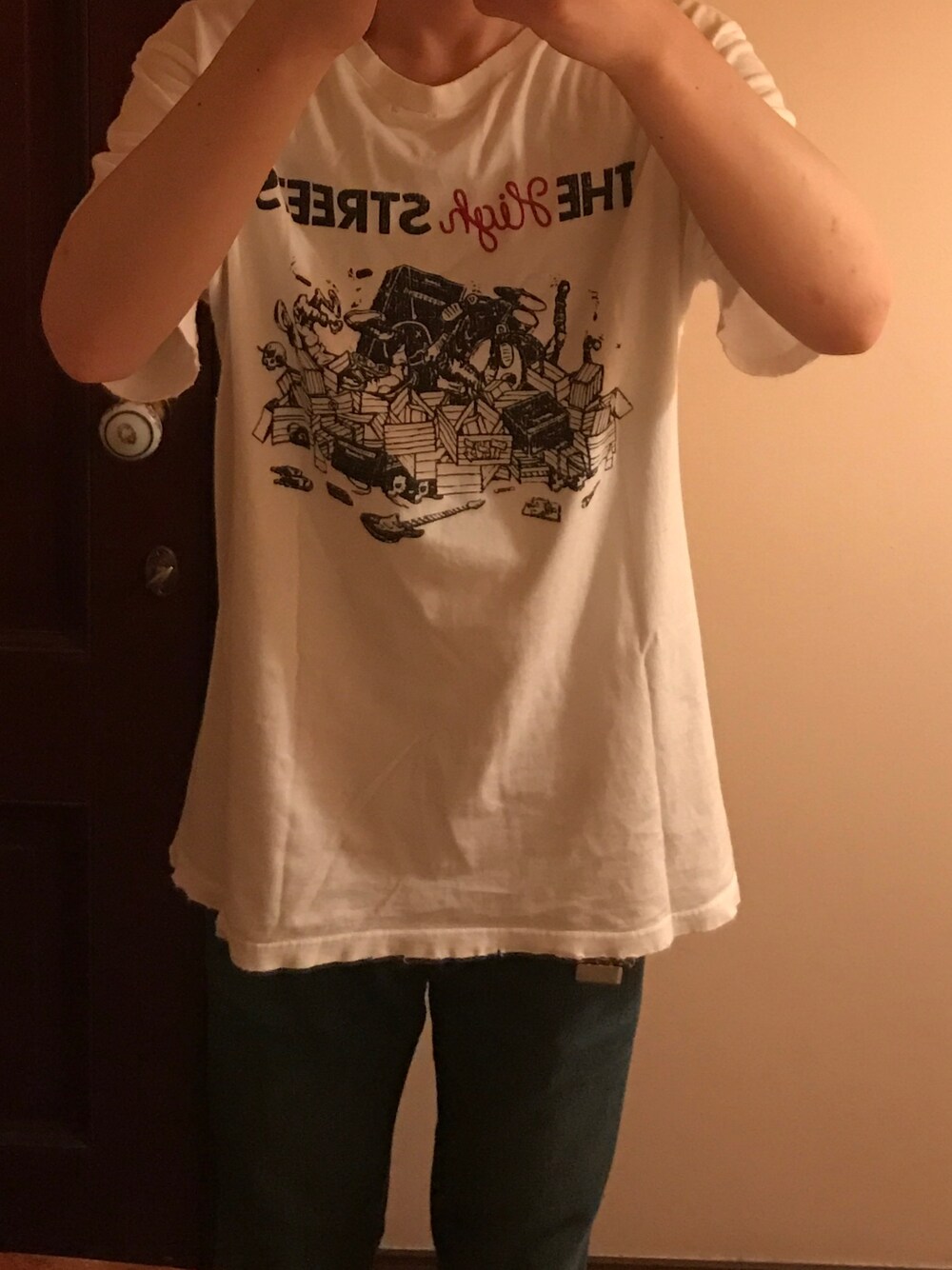昔のNUMBER(N)INEのTシャツを引っ張り出してきた。 デザイナーであった宮下さんのバンド、THE High STREETSモチーフのもの。 バンドモチーフのものの中に色々と面白いものが隠れていたりする。 こういうモチーフのものは少し大きいサイズで着用する方が柄も大きくていいです!