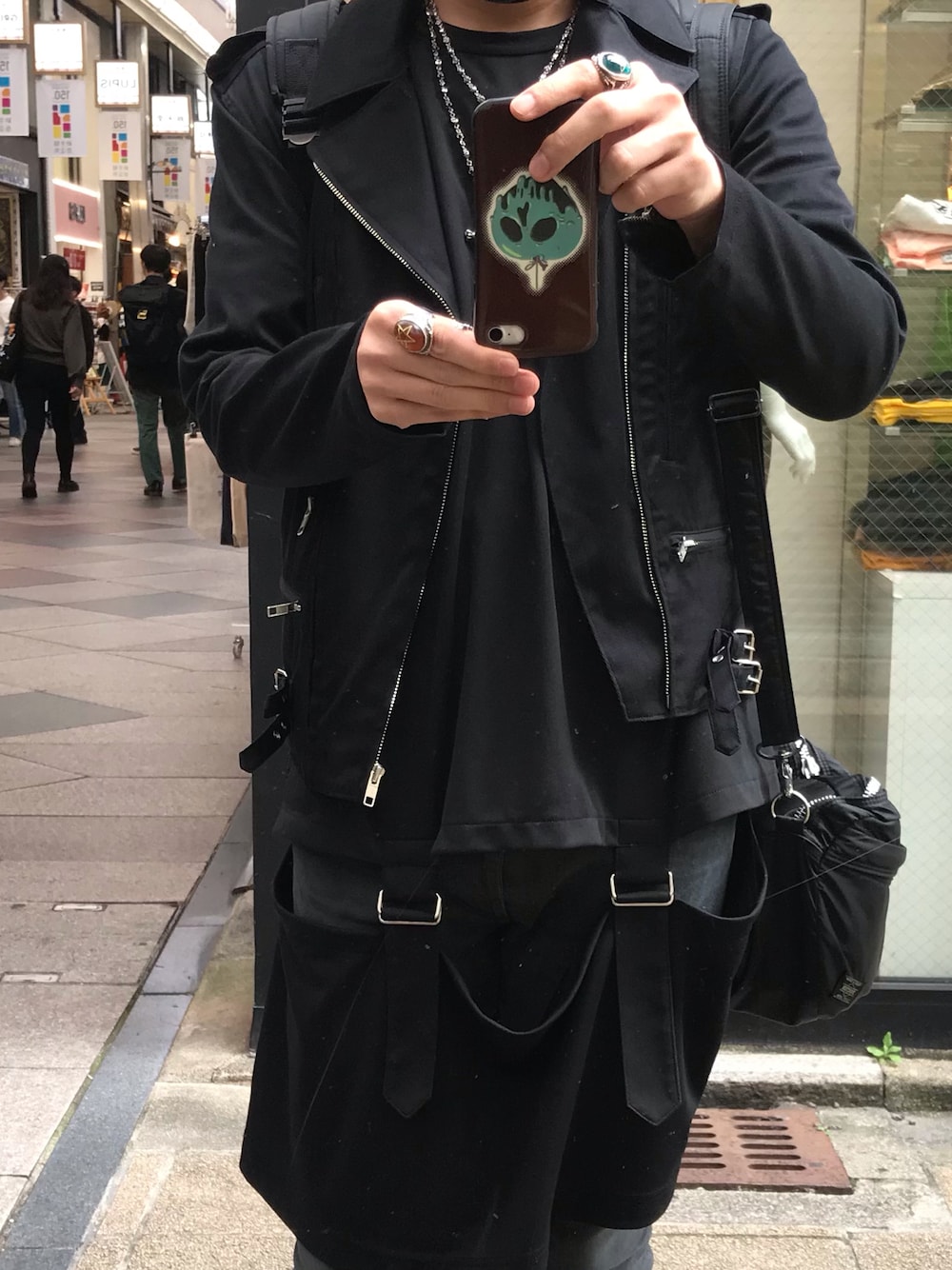 涼しくなってきたのでジャケット着ようと思い、目に付いたのがコレでした。 一目惚れして、これをキッカケに暫くダブルのライダースがブームになって色々買った思い出があります。 帆布生地のものですが、かなり丈夫で愛用してる。 ちょっと丈が短めなのでロング丈のものも良く合う。 インナーは昼間暑くなると踏んで半袖にしたんですがちょうど良くて自分の判断を褒めたいと思います!