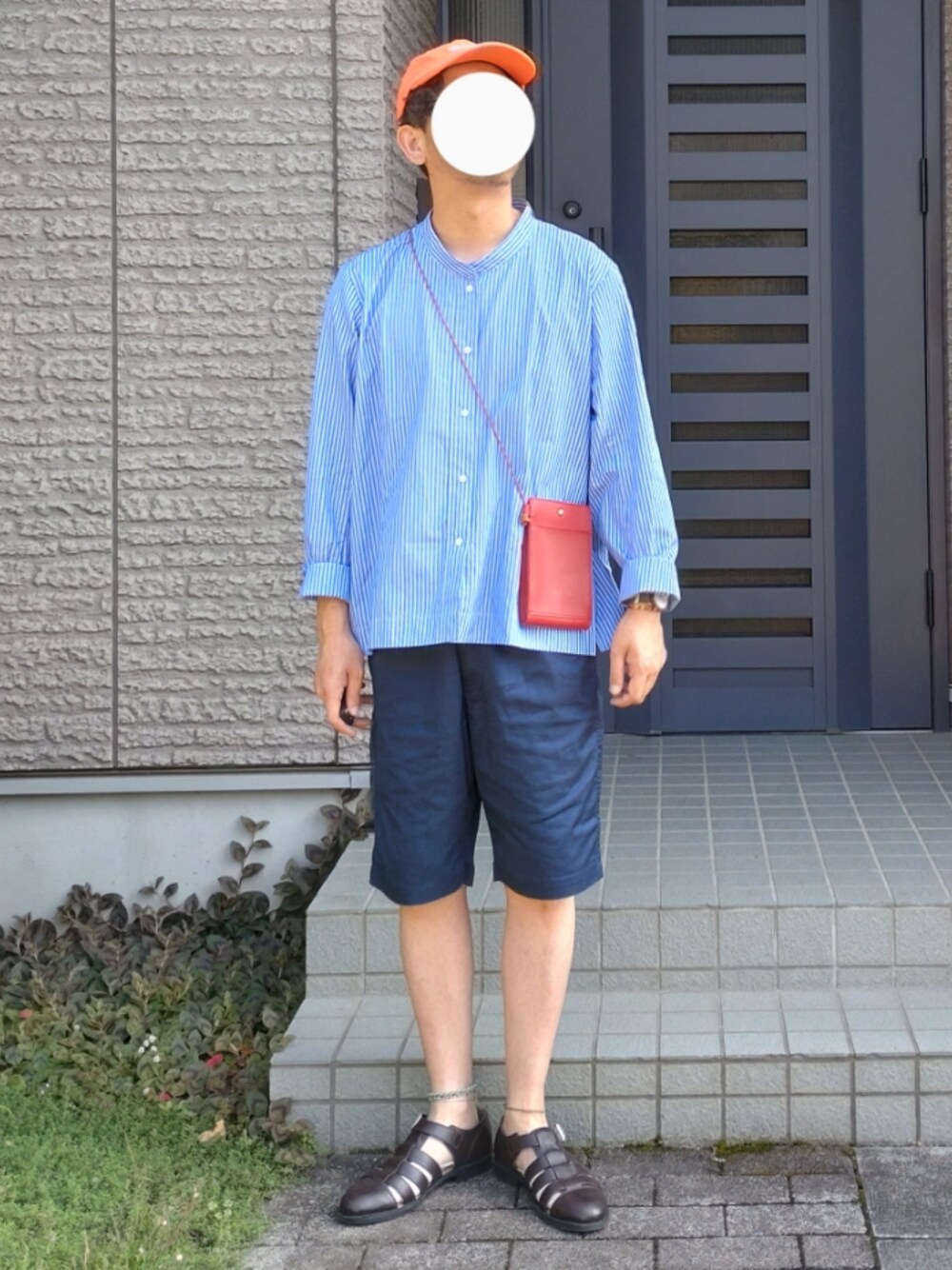 いつもご覧いただきありがとうございます☺ ブルーのシャツにネイビーパンツ☺ 最近気付きました、腕を出すより素足出した方が涼しいなって☺