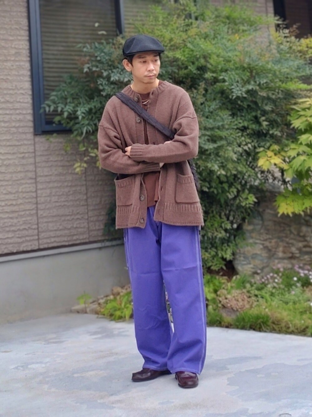 いつもご覧いただきありがとうございます☺ パープルのようなカラーパンツには、秋らしくブラウンのトップスを🟤 今日のコーデはブラウンのカーディガンを合わせました インスタもやってます、何か御用ありましたら、こちらまでお願いします👇 showa.modan
