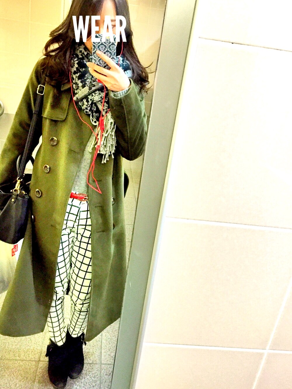 お久しぶりです 最近ロングコートばっかり着てるので 肩凝ってきた気がします(笑) 本日はカーキ! 手持ちの服の高割合を占める黒白グレーに とっても合わせやすいし ゴールドのアクセが映えますね! インナーは淡い色なのでのぺーっとしないように 赤のベルトでラインをいれてます バッグ、マフラー、靴は黒で統一! なんだか気づいたらいつも 靴バッグと靴は同じ色にしてるな〜 ロングアウターって本当にあったかい☺︎ 最強寒波乗り切りましょう!