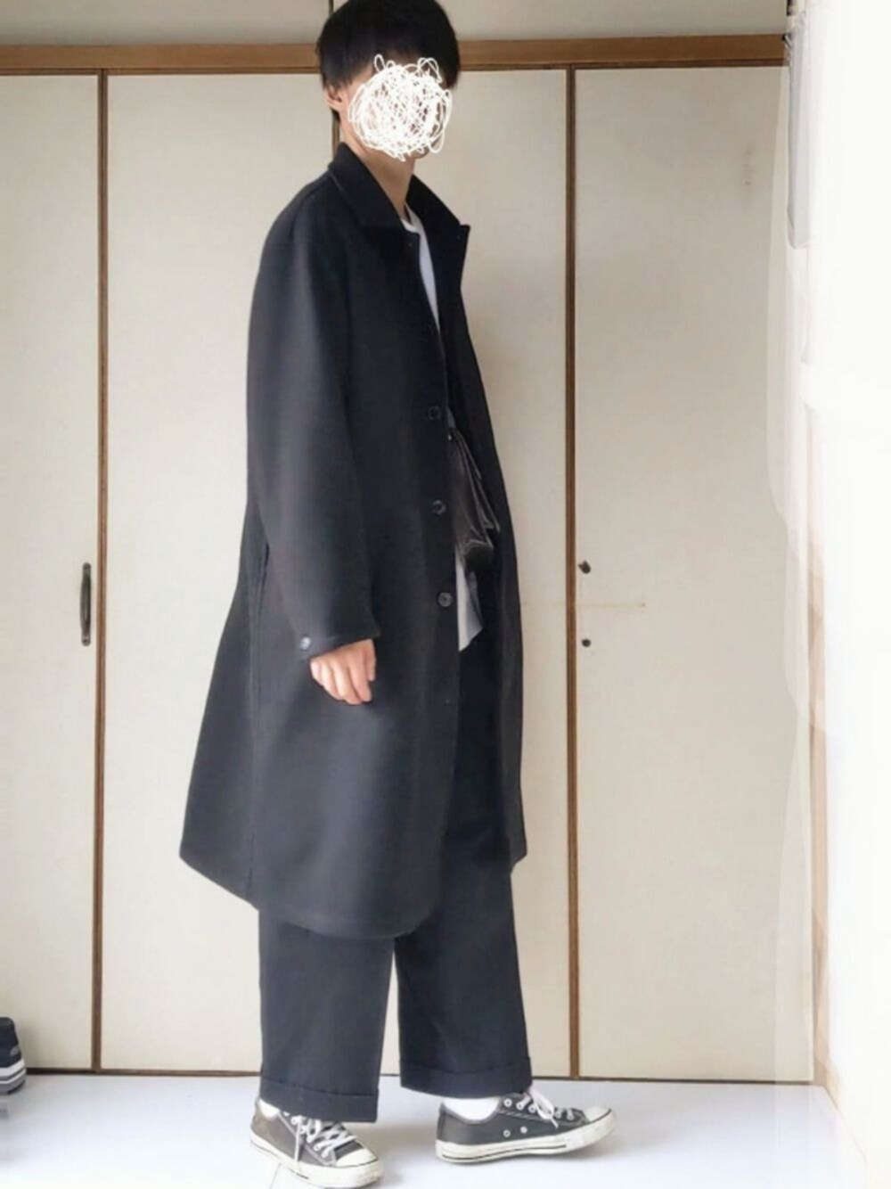 モノトーンコーデ!! ステンカラーコートめちゃくちゃ使いやすい!笑 モノトーンにはコンバース使うとバランスよくなりますよね😆 このコート形いい!!