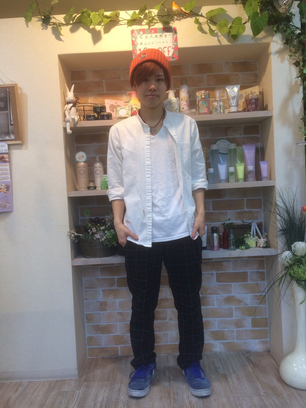 白シャツキレイめコーデをオレンジニットでカジュアルダウン!!