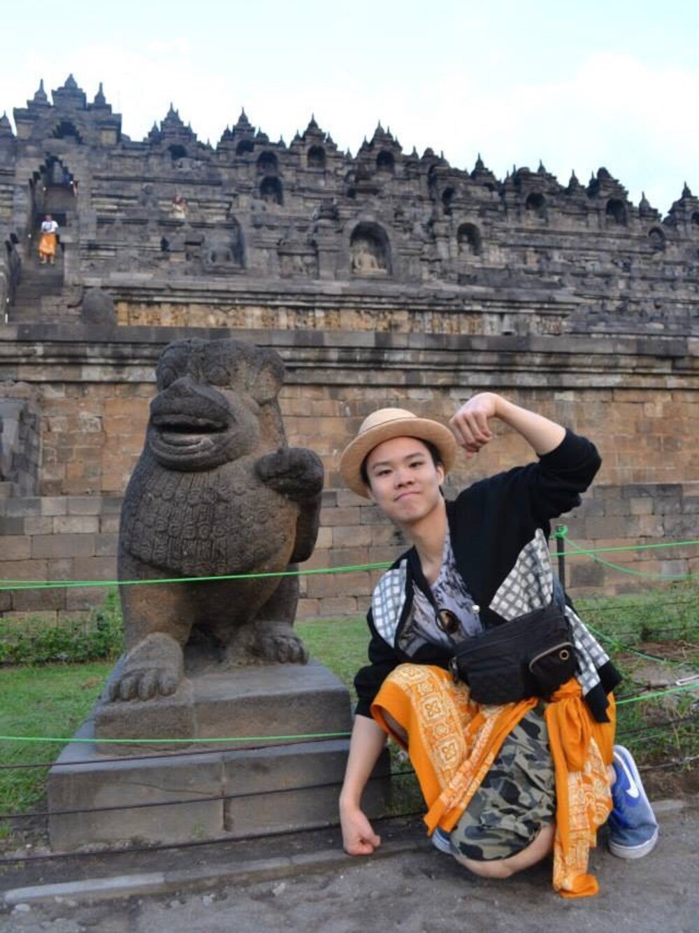 【インドネシアン腰巻きスタイル!】 インドネシアの世界遺産ボルボドゥール遺跡前にて! こんな腰巻きスタイルどうですか(^^)?笑