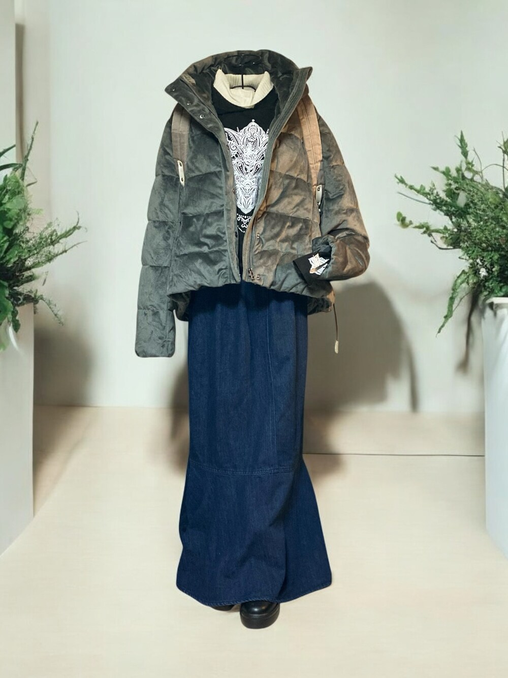 SHOWKO のダウンジャケット/コート「撥水 | プレシャスカラーショートエコダウンジャケット | レディース アウター 羽織 体型カバー 保温 暖かい ショートコート ショート丈 ダウンジャケット ベロア エコダウン」を使ったコーディネート