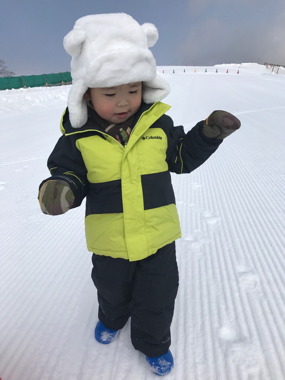 コロンビアのスノージャケットはリバーシブルでカッコいいんだ(╹◡╹) ソリでシューっと滑ったんだけど、ぼくは早いのが好きだよ、もっとスピードだして欲しいな❤︎