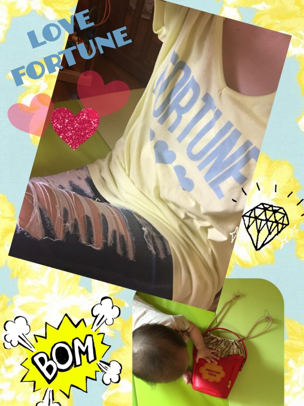 ラヴ運♡♡♡ おかあさんは大好きなポテトフライのバッグを 見つけてうれしそうだよ。 ぼくがさわろうとするとダメーって言ってかしてくれないんだ!なかみをだして遊びたいのに! けちんぼだなぁ〜。