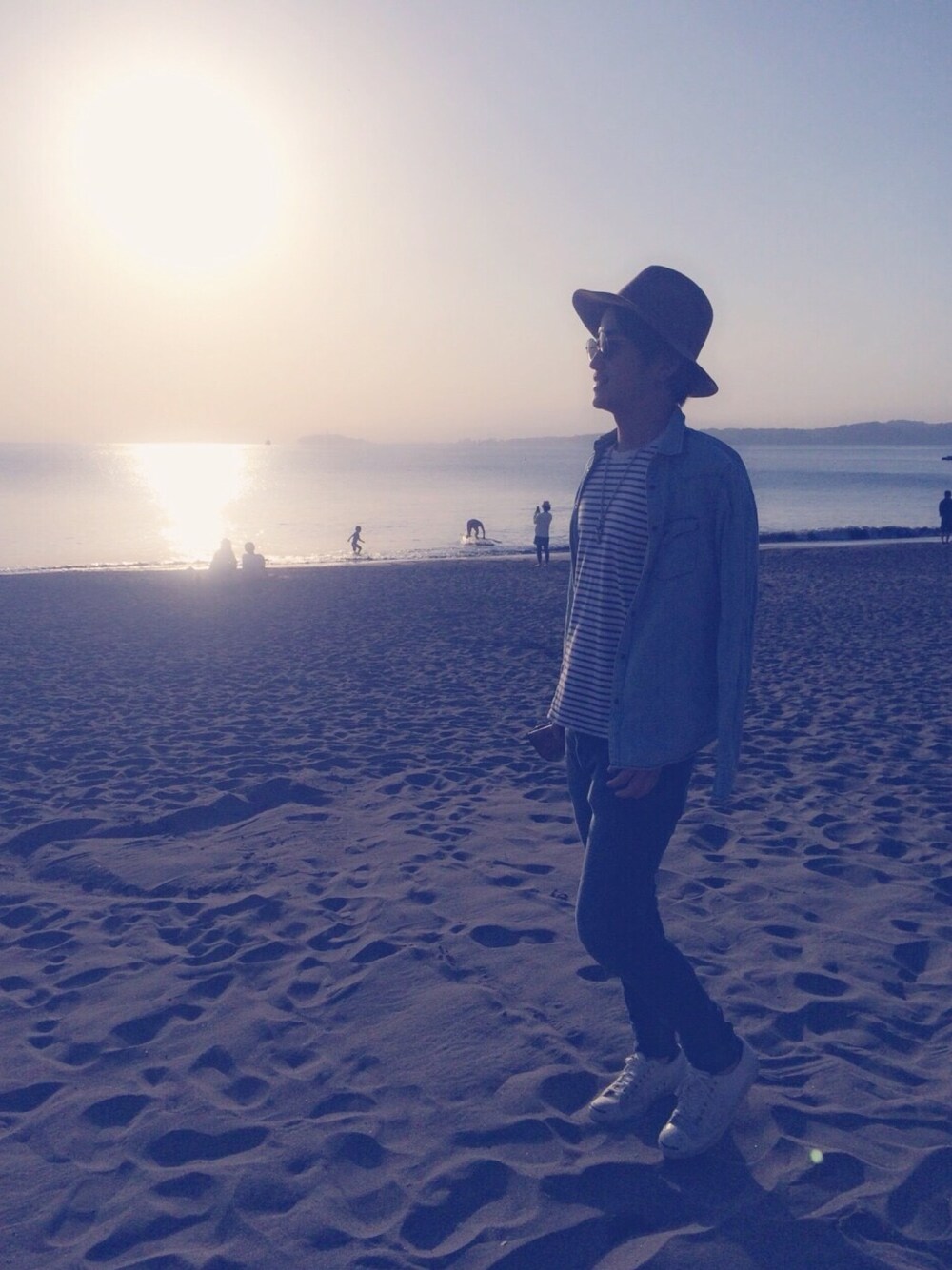 デニムonデニムスタイル👖 ボーダーとホワイトスニーカーで爽やかな印象に☀️