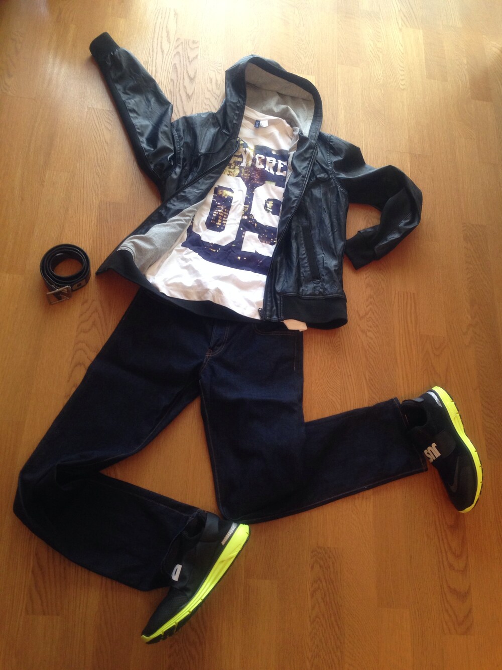 本日は足元をベース置いてシンプルな服装に。 暖かいので春物ジャケットで。 ベルトはDIESEL。