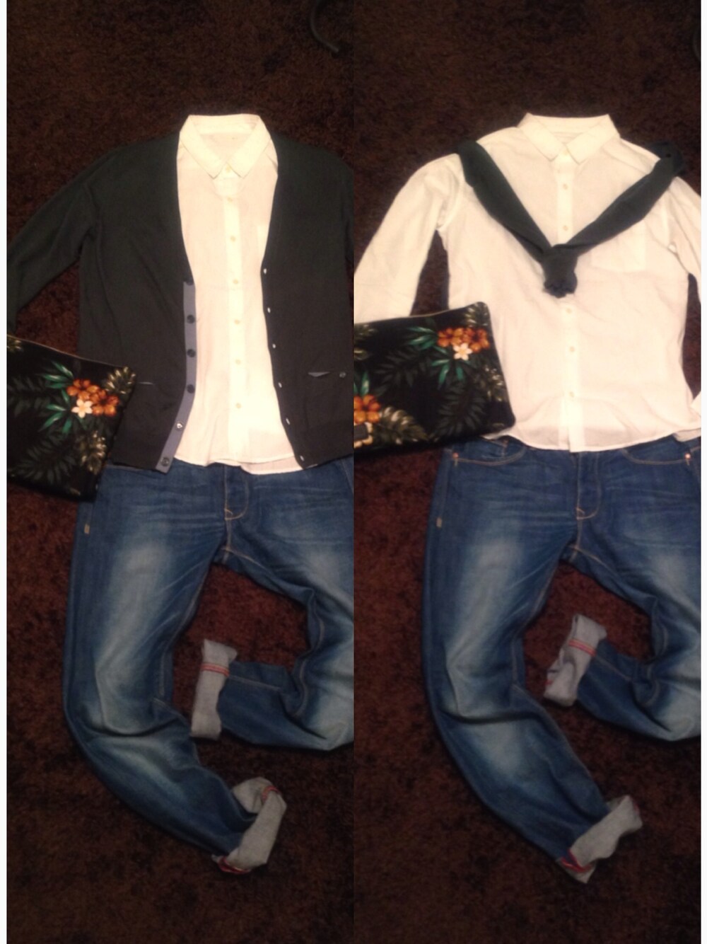 本日も暑いのでデニムはロールアップに昼間はカーディガンをP巻きで夜は寒くなるので羽織ります。 初挑戦のクラッチバッグ。 ベルトはいつものDIESELで。