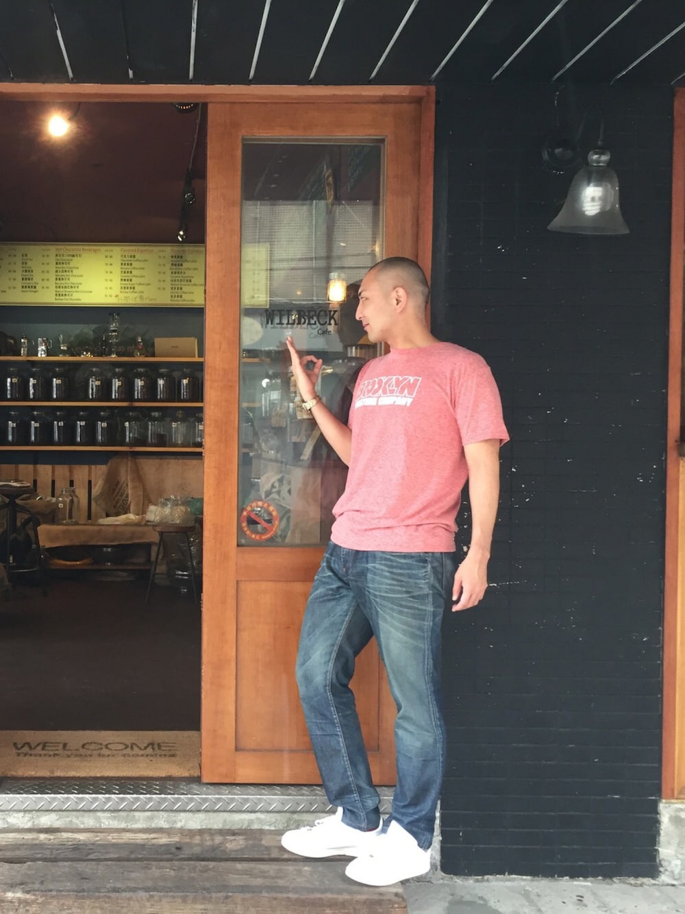 台北へ!休日、旅コーデは出来るだけシンプルに! Tシャツは大阪北浜にある馴染みのカフェ、ブルックリンコーヒーロースターのものです。