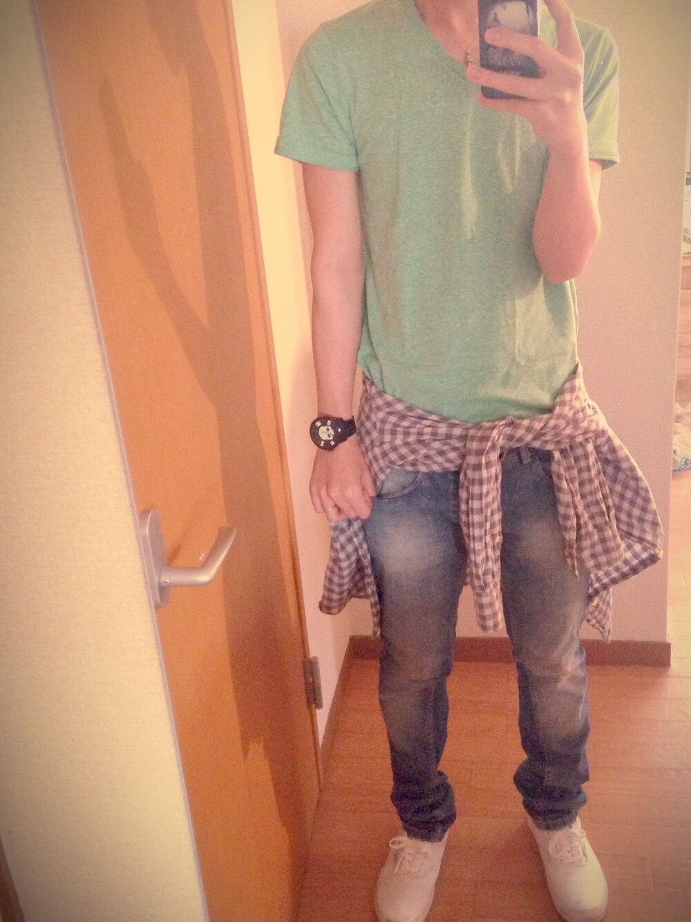 Tシャツ:OLD NAVY デニム:Bershka 腰に巻いたシャツ:H&M VIVID 名付けてUmieコーデ! 神戸の方以外はなんじゃそれって感じですねw