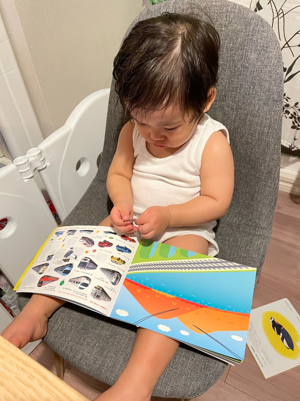 ホワイト系のロンパース、ホワイト系の音楽/本・雑誌を着用したキッズの冬コーディネートの1枚目の写真